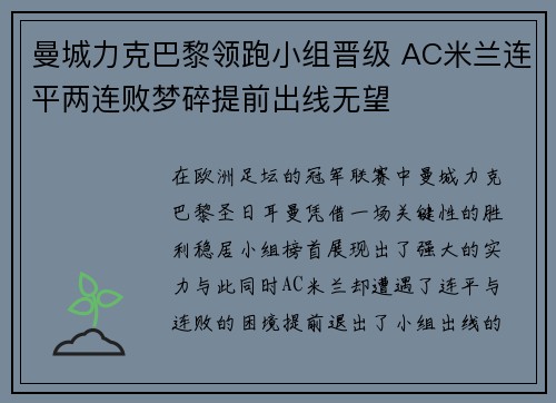 在欧洲足坛的冠军联赛中,曼城力克巴黎圣日...