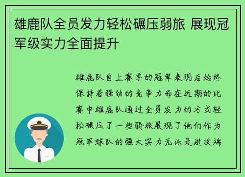 雄鹿队自上赛季的冠军表现后,始终保持着强...